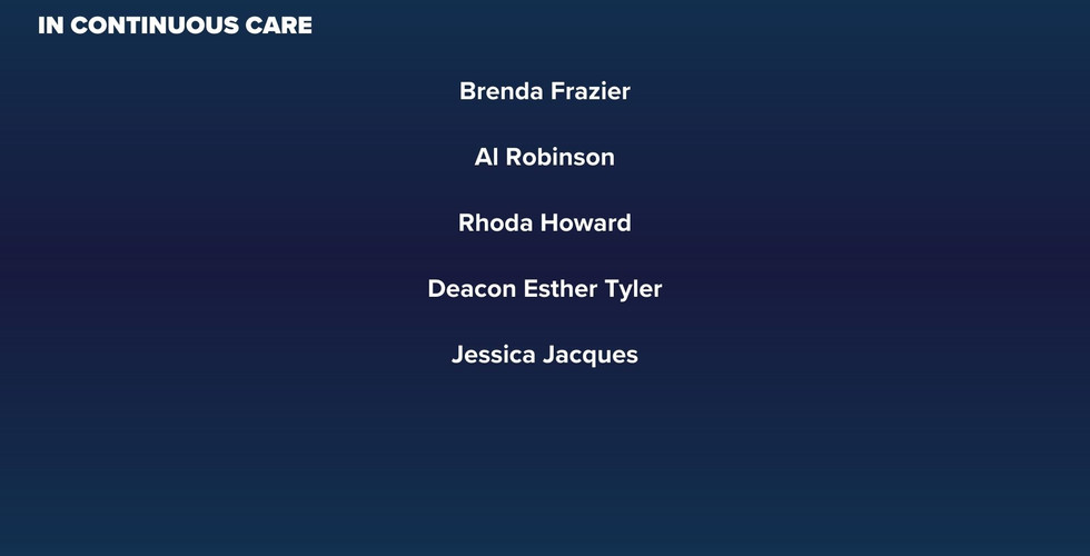 Let us also remember those who are in continuous care, praying for their ongoing strength and healing: